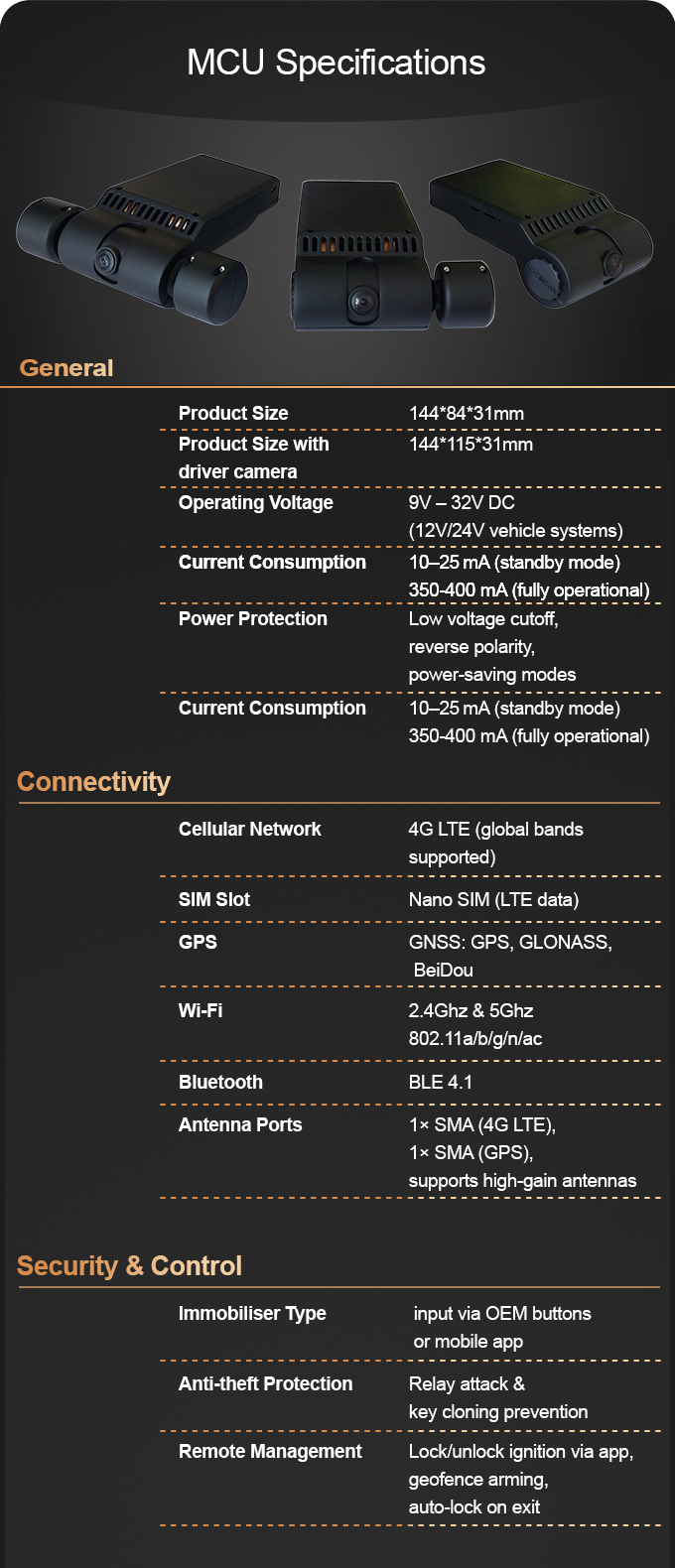 - Lockcar MCU (mini computer unit), which integrates multiple modules, such as 3G/4G, Wi-Fi and G-sensor.